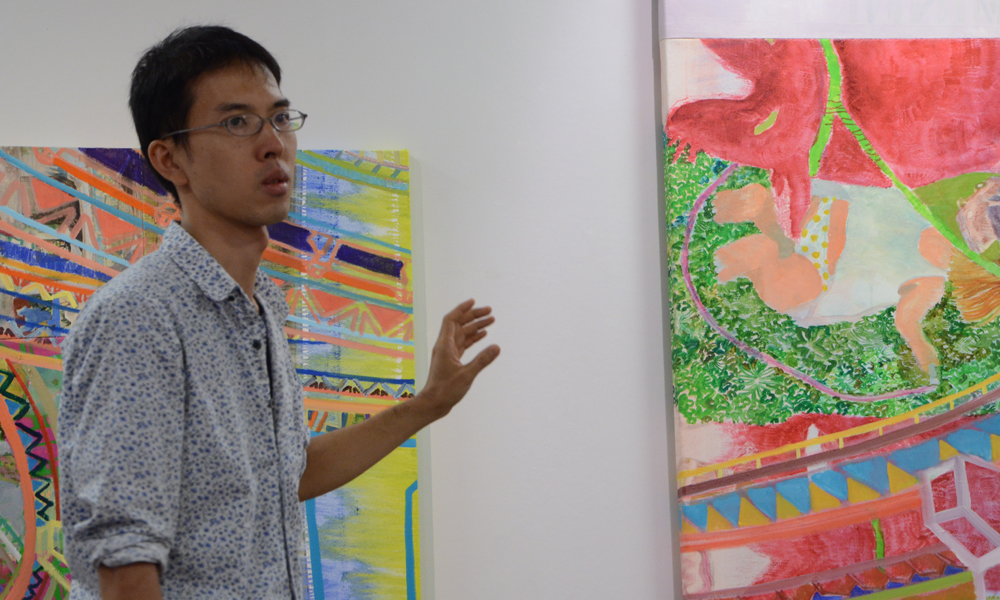 本展では、作者の水田自身が落書きや漫画の模倣を 繰り返していた美術教育を受ける前の自分を振り返 り、現在の作品に通じるものを見つけようと試みた。 「レトロポリス」とは、絵を描くということへの率直な 欲求と美術教育がもたらした影響とを見つめなおし、 そこから新しい作品群を建設して行くイメージに着想を得ている。