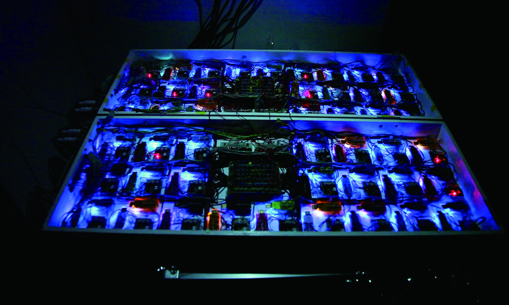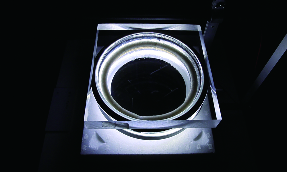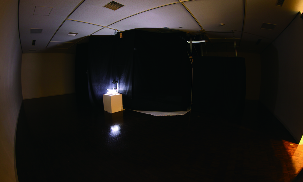 本展では、日常空間を飛び交う放射線を「霧箱」 という装置によって可視化し、それが人体を模した スーツにプロジェクションにて投影されると、光の 当たった部位がその部位の名称を発声するという 仕掛けにより、知覚不可能な感覚を視覚・聴覚で クローズアップする事で、新たな体感・実感の場を 創出させる事の可能性を探った。