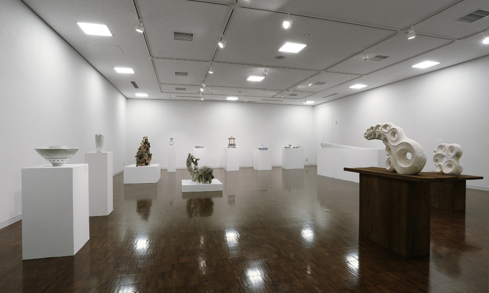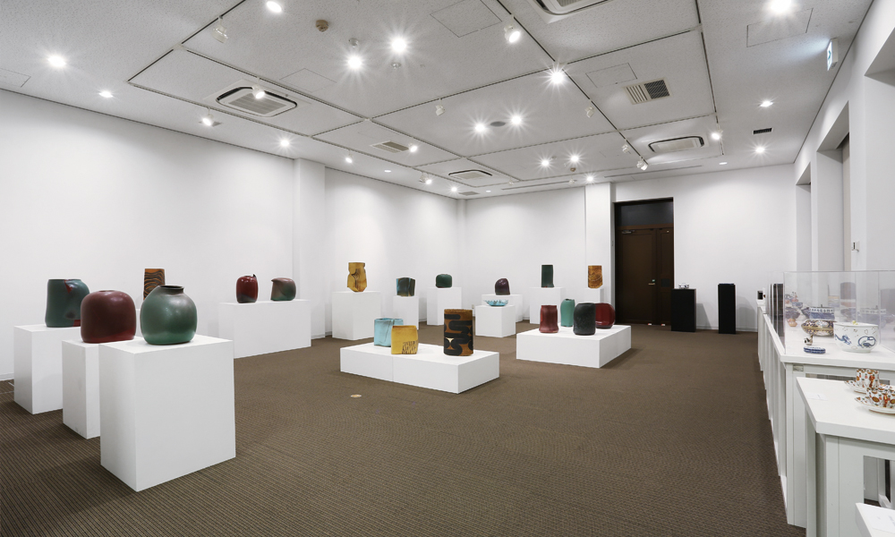 2007年から京都市立芸術大学陶磁器専攻で教鞭を執った叶道夫は、本学在学中から日展を中心とする活動を開始する一方で、京焼を代表する窯元のひとつ松谷窯の当主、叶松谷として、主に京懐石のための器作りに携わってきた。本展では道夫、松谷それぞれの作品を紹介し、同時開催として叶に指導を受けた新進陶芸家5名による展示を行った。