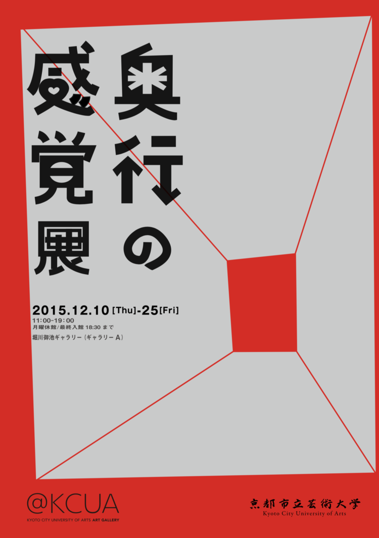 京都市立芸術大学の各専門領域を横断しながら授業を行う「テーマ演習」の一つとして2012年度より行われている「奥行きの感覚」では、彫刻専攻、陶磁器専攻、日本画専攻、芸術学専攻、宇宙物理学研究室の各教員と様々な専攻の学生が参加して、「奥行きの感覚」を古今東西のあらゆる芸術表現を紐解くためのキーワードとして研究を進めている。図像学や社会文化史、精神史等を基盤とする作品評価とは異なり、「造形」に由来する奥行きを手掛かりに実制作者の視点から表現を読み解き、新たな解釈やさらなる展開の可能性を見つけ出そうとする試みである。今回の展示では、2014年度から今年度に行った研究の成果を、その過程で生み出された考察を交えて紹介した。