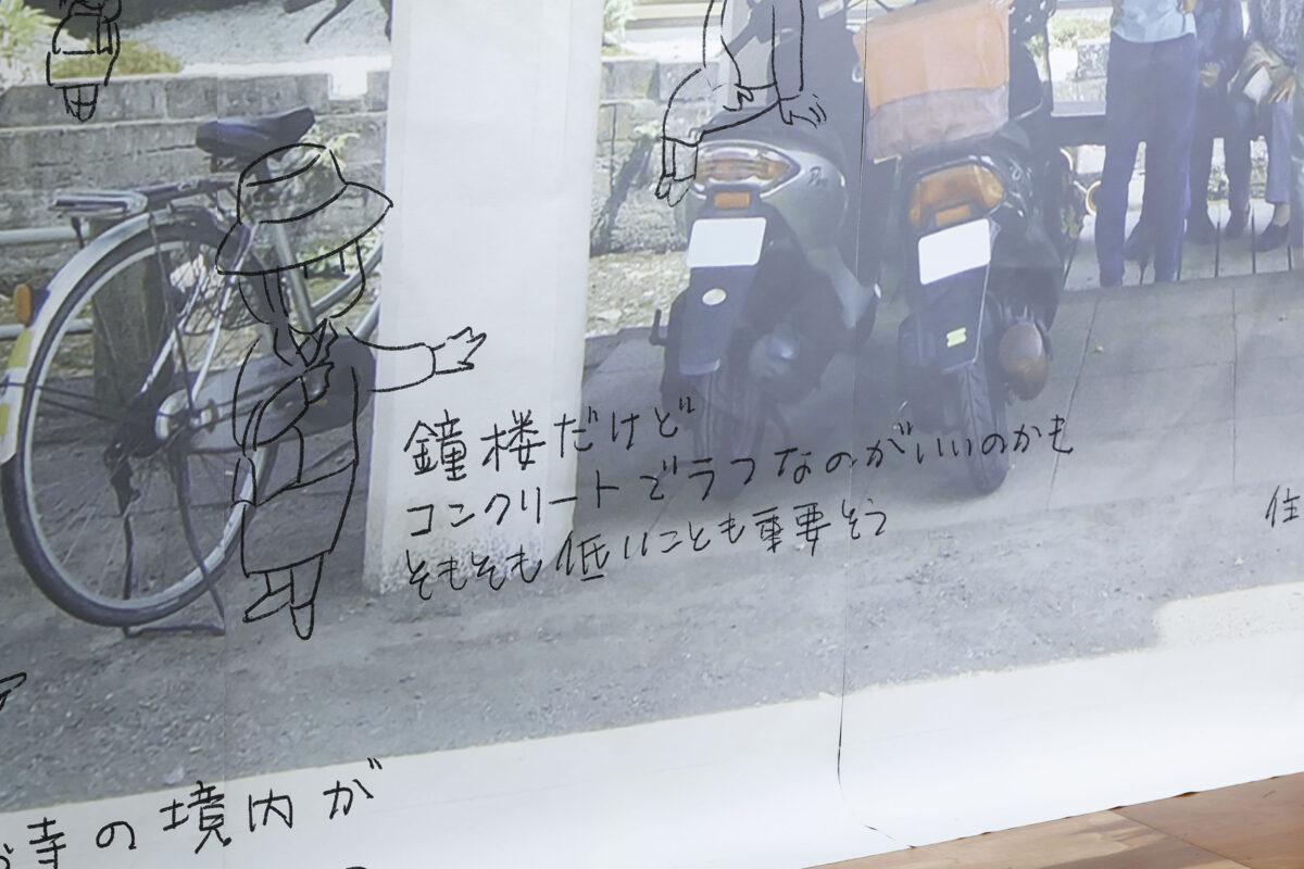 京都市立芸術大学及び京都市立美術工芸高校移転整備工事乾・RING・フジワラボ・o+h・吉村設計共同企業体(以下、京芸設計JV)の代表である建築家の乾久美子は、日常で、また仕事先で出会った、誰がつくったのかわからないけれど、生き生きとして、人の温もりを感じることのできるささやかな場所を「小さな風景」と呼び、協力者と共に膨大な数の記録を撮りためてきました。本企画で紹介するこれらの「小さな風景」に、乾はコモンズ的なもの、場所への愛着、居心地、共有の感覚の源泉などを見出し、日々の学びとしています。なかには、あるコモンズのなかに、また別のコモンズが生まれ、共存しているものもあります。このように一時的なコモンズを発生させることを、「コモニング(コモン化)」といいます。こうした日常的でローカルなコモンズ/コモニングの事例を蓄積しながら活動してきた乾は、建築をつくるのではなく「おく」と表現しています。その言葉には、建築とは空間を与えるものではなく、その場に生きる人々と相互に関係し、その人々が生み出す「小さな風景」と共にあるものと考える建築家の思考が表れています。