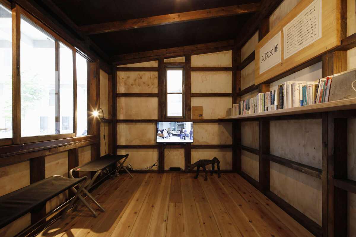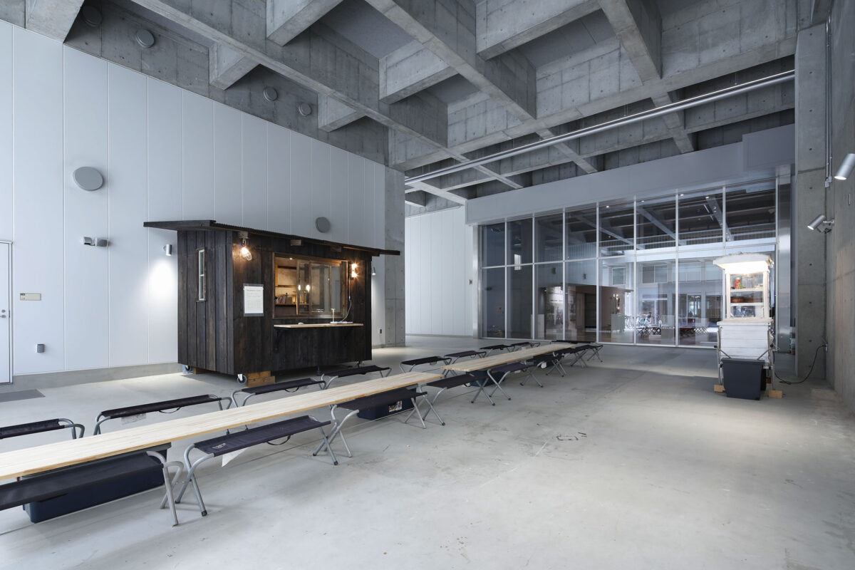 昨年度まで本学美術学部彫刻専攻の教員を務め、この4月に本学理事長兼学長に就任した小山田徹は、数十年にわたって、「共有空間の獲得」をテーマとした活動を続けてきました。ホームパーティーが外に広がっていったかのような、人々がゆるやかに集う「カフェ」、小さな焚き火のもとに集う場などの共有空間は、対話や議論が生まれ、育まれていく場所となっています。それらはすべて与えられた空間ではなく、ばらばらな人々が集い、それぞれ固有のリズムを保ちながら、自分たちがつくったものとして愛する空間です。これらもまた、イディオリトミックな共生の場ということができるでしょう。本企画では、約15年間ものあいだ、小山田が作り続けてきた共有空間で、その役割を変化させながら寄り添ってきた小屋状の立体作品《浮遊博物館》を、新キャンパスに「おく」ところからはじめます。実はこの作品は、ようやくその使命を全うして「副産物」になりかけていたところを修復され、復活したものです。そして展覧会会期中の週末には、誰もにひらかれ、それぞれが思い思いに過ごすことによって育つ共有空間「ウィークエンドカフェ」が出現します。