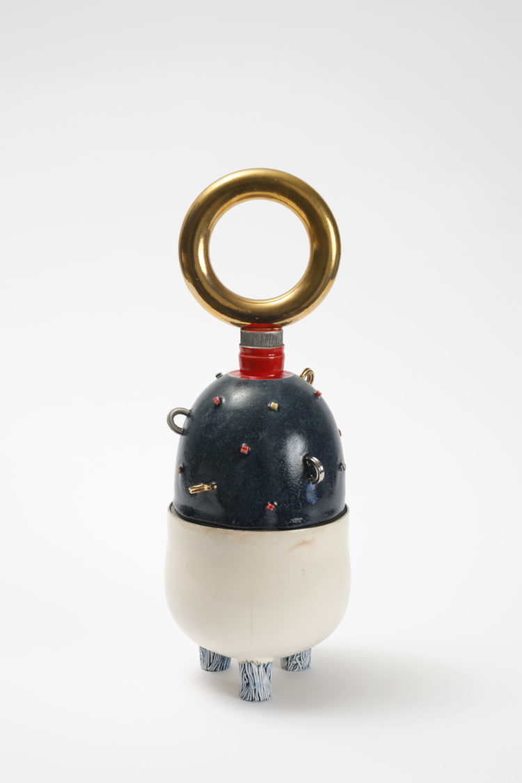 西久松:私の制作活動は自分の精神的な部分と大きく関わっています。震災や昨今のコロナ禍の影響もあると思いますが、死への恐怖が私の中で以前よりも大きくなっています。安心感を得るための行為の一つとして制作があります。土を触る時や轆轤を回す時には気持ちが落ち着くし、土の表面を装飾や色で埋め尽くすことで安心感を得ることもあります。その結果生まれた作品の存在は、私の理解者でもあります。だからといって作品を自己本位なものだけにはしたくない。鑑賞する人へ全ての解釈を委ねるわけではないですが、作品を介して少しでも思いや考え方を共有できればと思っています。昨年の個展では、「輪」をテーマにした作品を展示しました。すると、作品の一部の輪の部分に手を差し込んだり、そのまま作品の周りを回ったりする方がいて……少し驚きましたが、何かを感じてくれているのかなって。人って輪とか円い形とかに、無意識のうちに精神的な安定や美しさ、神秘的なものを感じるのかもしれないですね。