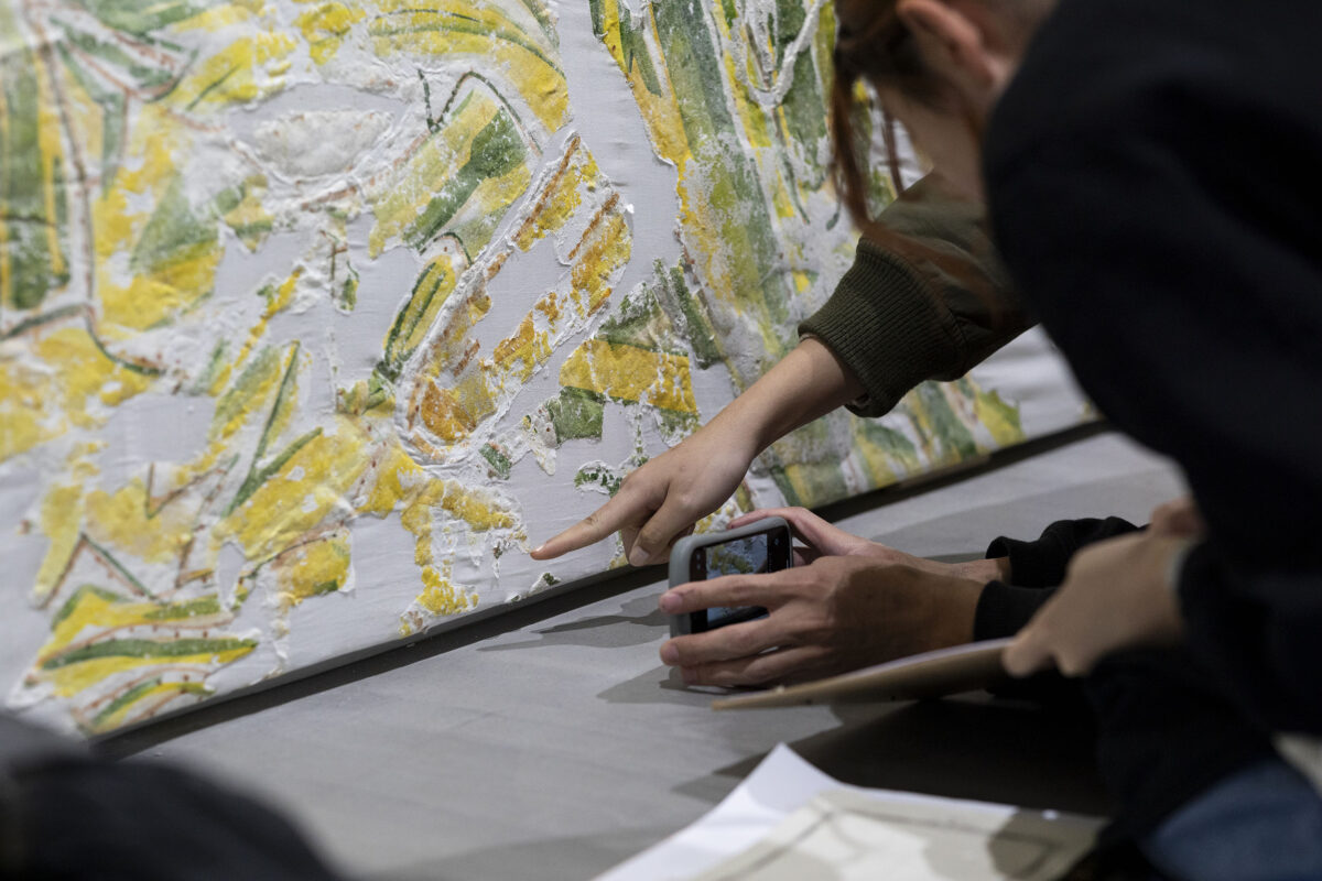 漆喰の上に描かれたフレスコ画は強度が高いものですが、ストラッポで剥がした描画面は非常に薄く、繊細です。今後、この作品を保存していくにあたり、定期的なコンディション・チェックを行い、修復作業の必要があるかどうかを見極めていく必要があります。