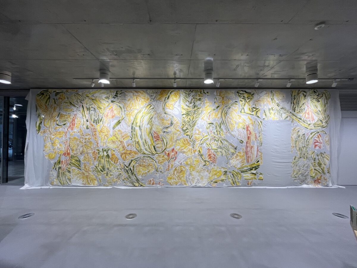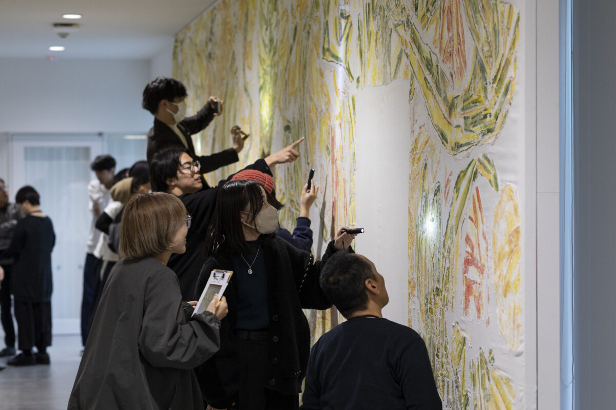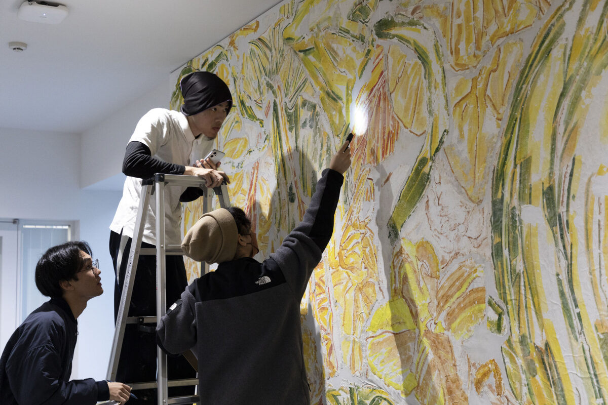 「still moving final: うつしのまなざし 学長室壁画引越しプロジェクト(第2期)」(2023年10月3日(火)–11月12日(日))の後、壁画はまた移動し、2024年4月上旬までD棟1階の事務局壁面(学長室前)に展示されました。