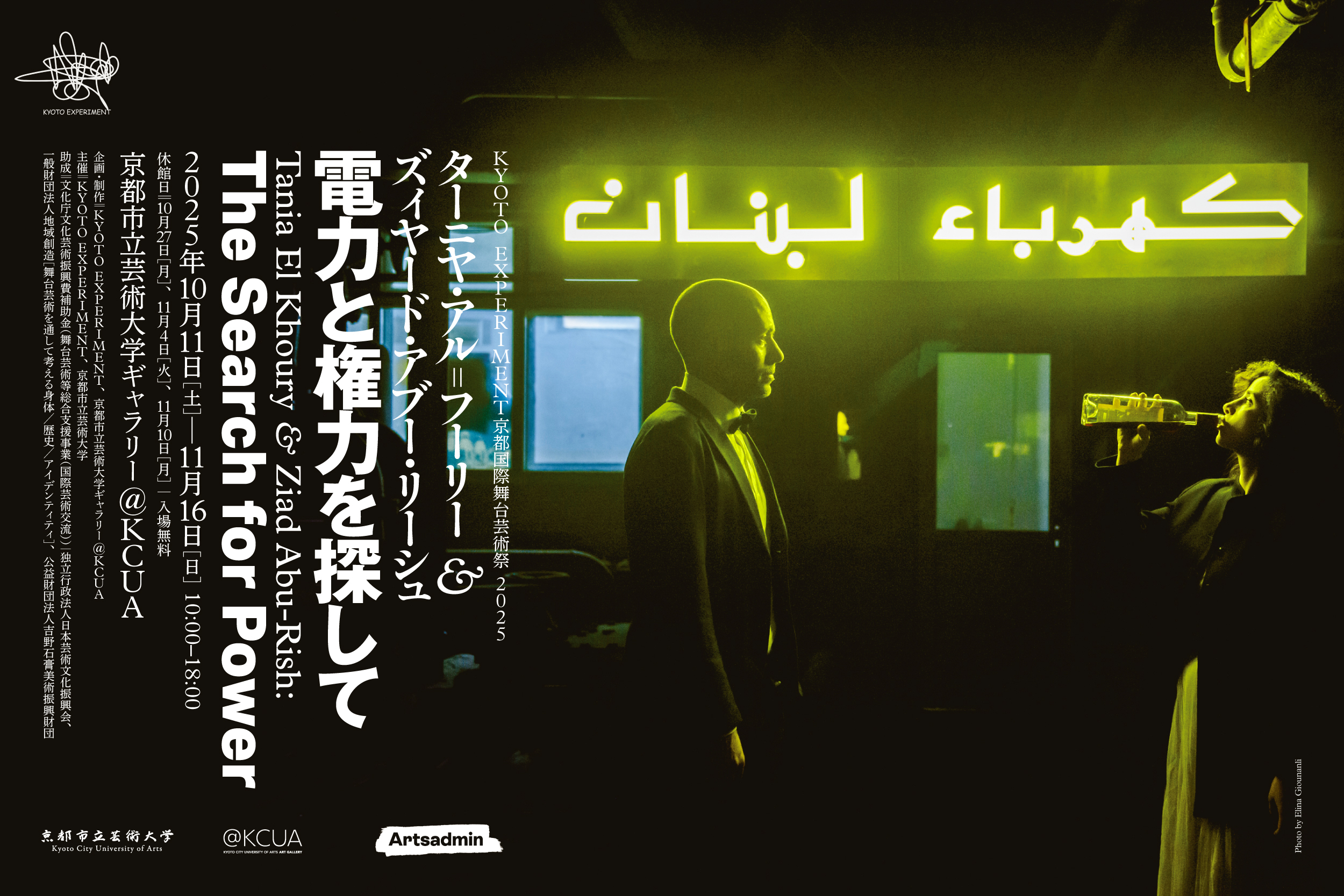 Current Exhibitions SPECIAL EXHIBITIONS Kyoto Experiment 2025 [Installation] Tania El Khoury & Ziad Abu-Rish: The Search for Power 2025.10.11 Sat.–2025.11.16 Sun. Kyoto City University of Arts Art Gallery FIND OUT MORE
